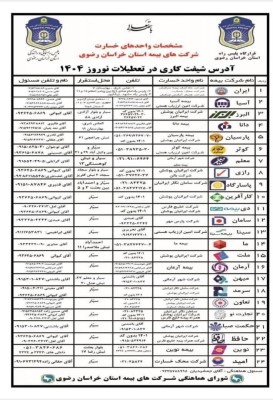 خدمت رسانی مستمر شرکت های بیمه خراسان رضوی در نوروز 1404